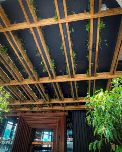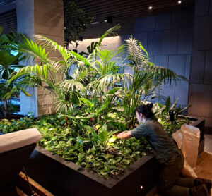 As part of the hotel’s commitment to sustainability and biophilic design, Fytogreen installed 90 metres of custom-designed FytoArbours featuring 582 plants across 45 species. These suspended planter systems soften the architectural interiors and create immersive green experiences for guests.