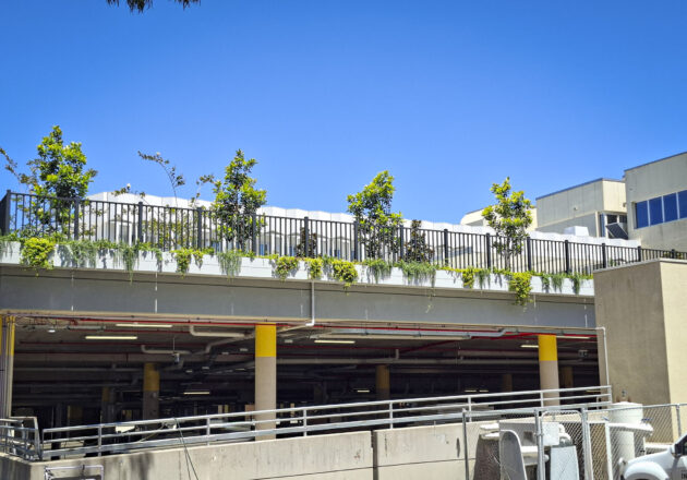 71 pre-grown Water Reservoir Planter Boxes with Trellis across 4 levels providing lush office greening...