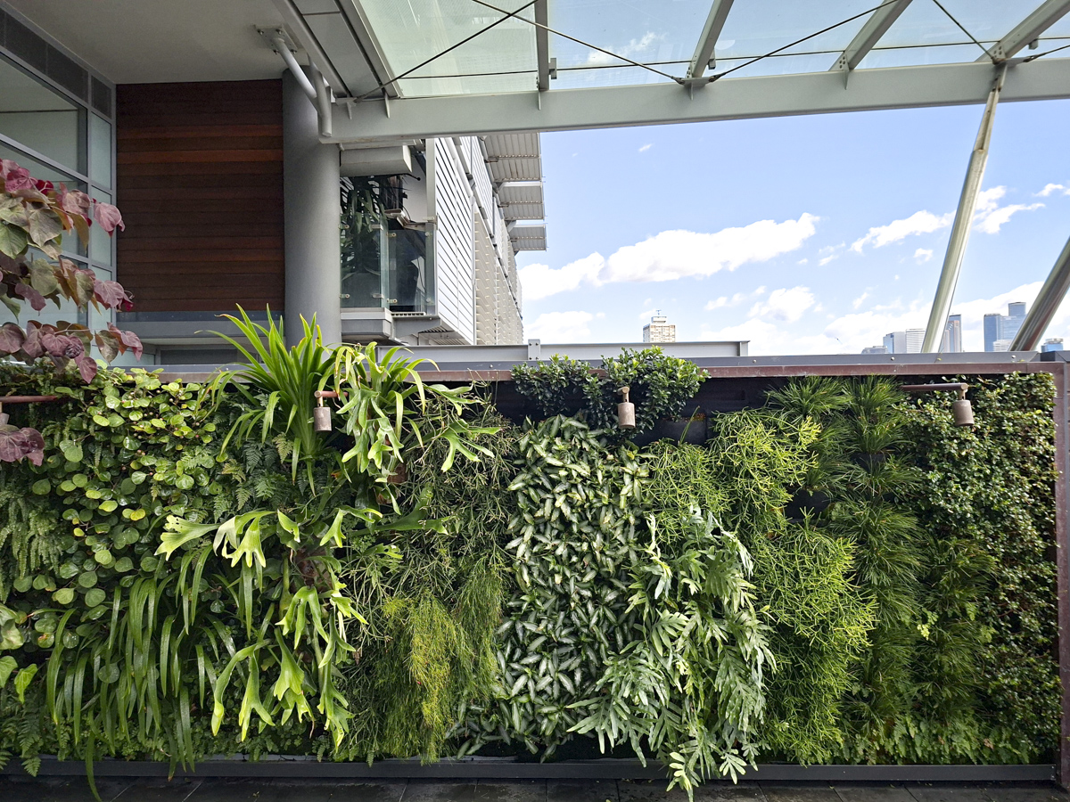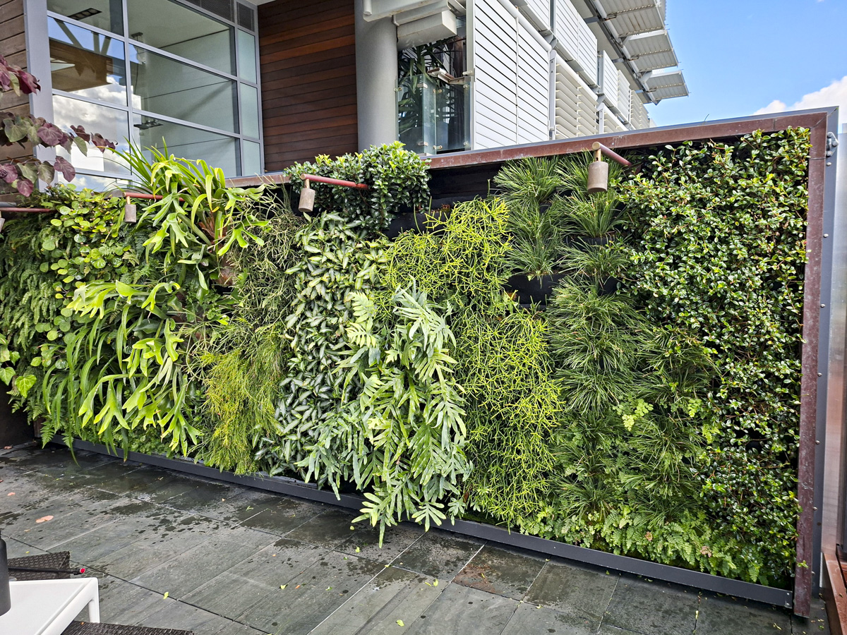 Completed in September 2024, these green walls are now thriving after one year of growth and look incredibly lush thanks to expert maintenance by Fytogreen.