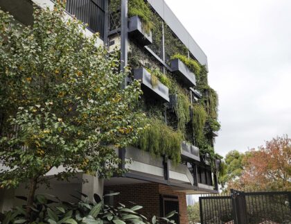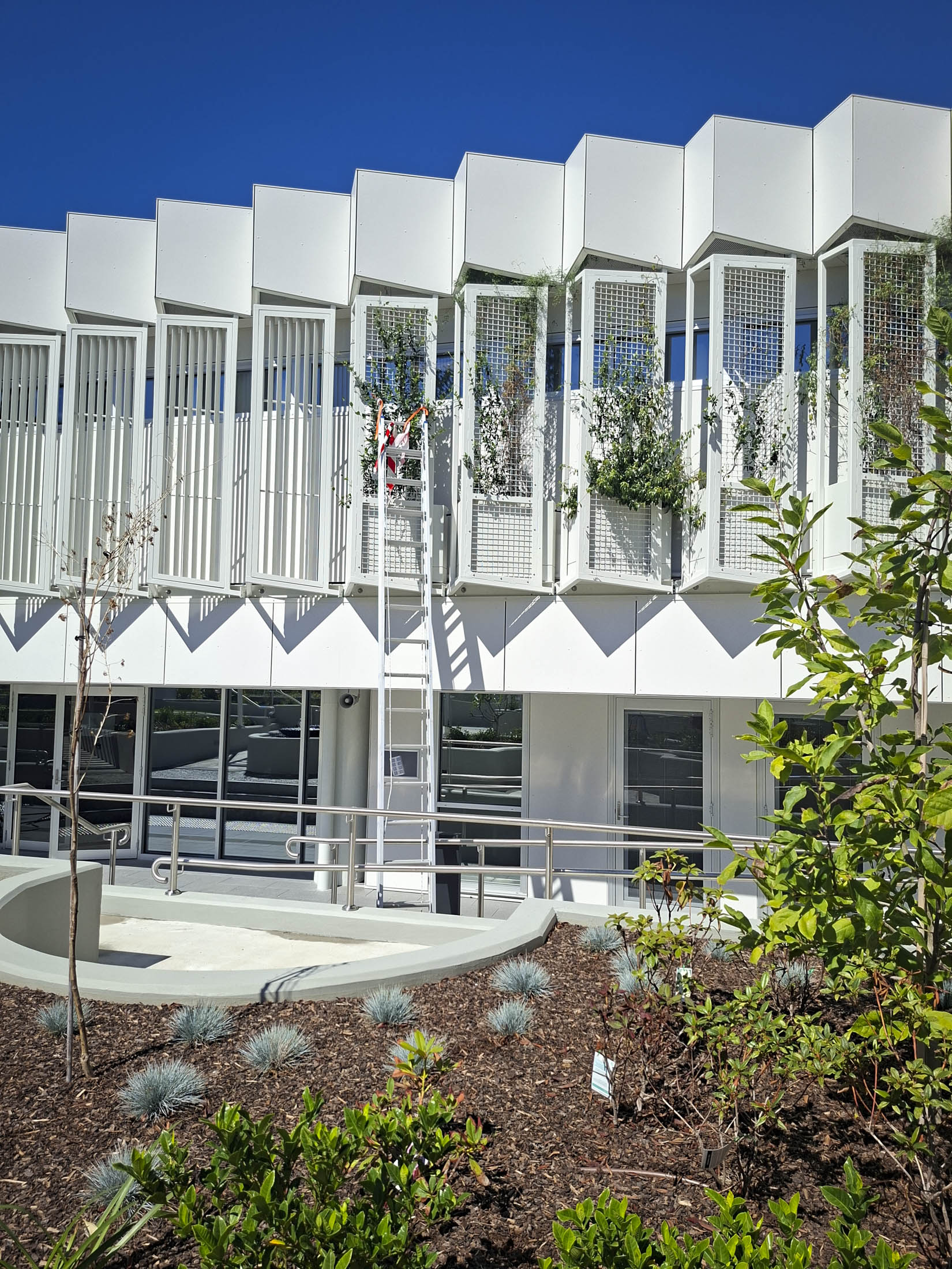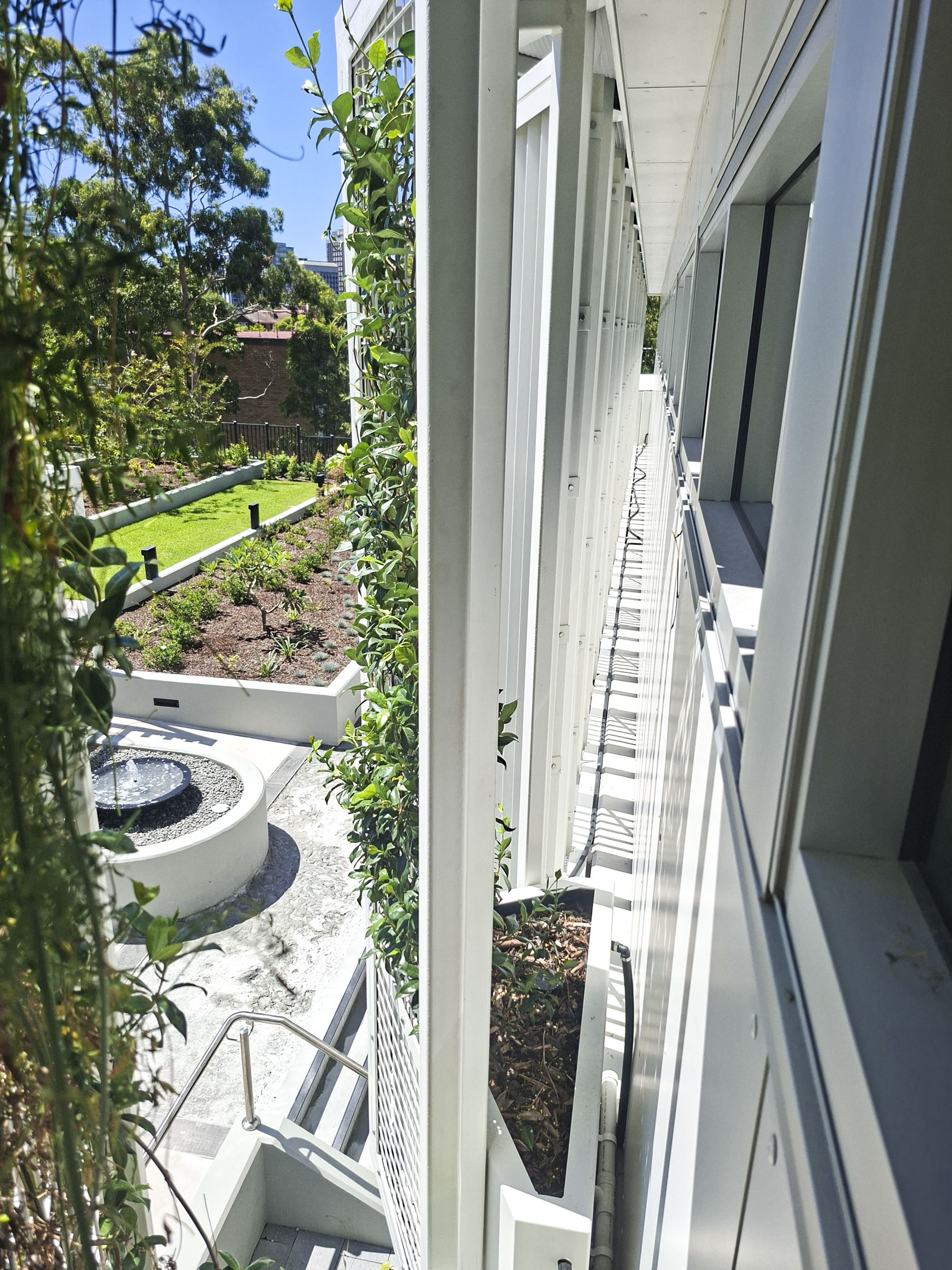Fytogreen designed, fabricated and installed a custom fire‑compliant aluminium louvre planter boxes to the louvre systems to form a living green screen along the façade of Mater Hospital in Wollstonecraft NSW.